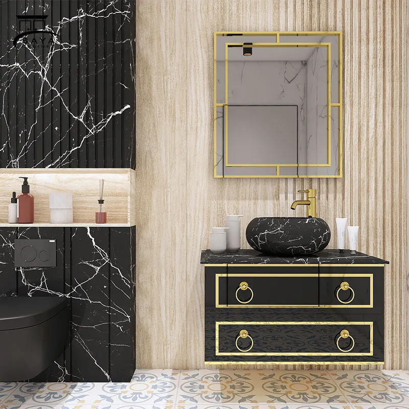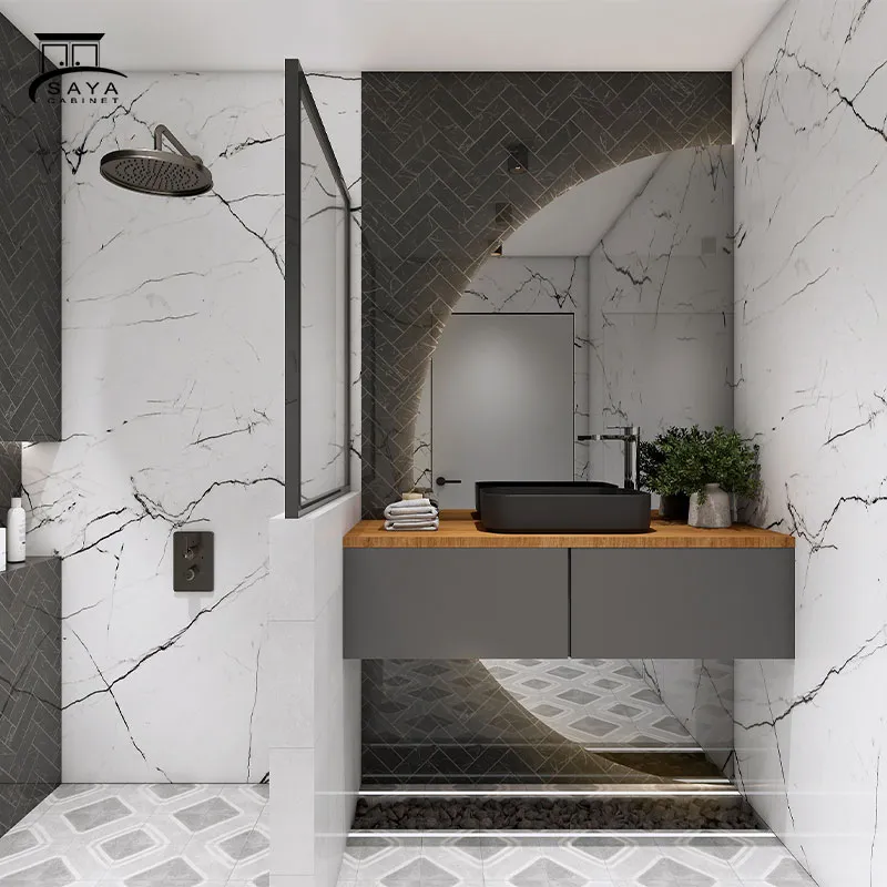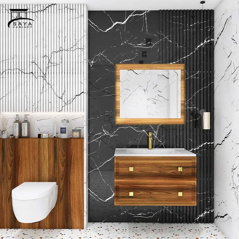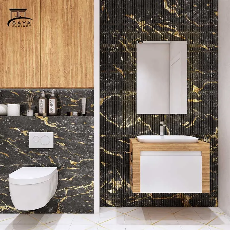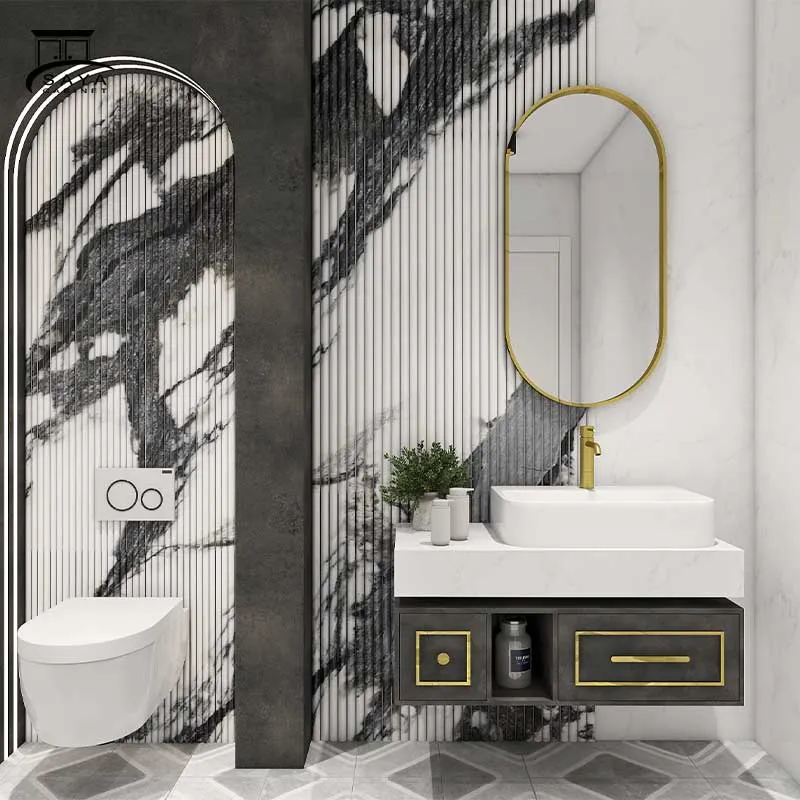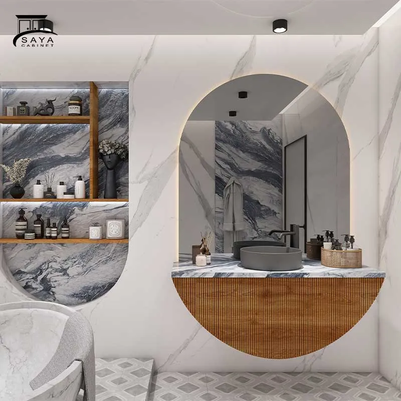 استفاده از سنگ های طبیعی در صفحات و ورق های PVC ضد آب، با کیفیت و دوام مناسب در بدنه ی روشویی.