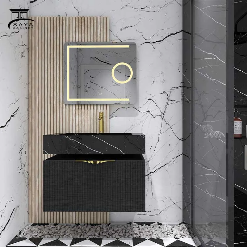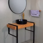 روشویی کابینتی مدرن کد 03 با طراحی خاص و ترکیب چشمنواز چوب و رنگ مشکی، گزینهای لوکس و امروزی برای سرویس بهداشتیهای مدرن است. این فولست زیبا با صفحه سرامیکی مقاوم، آینه چراغدار هوشمند و چیدمان هوشمندانه برای اکسسوریها، هم از نظر عملکرد و هم زیبایی، در بالاترین سطح قرار دارد.
